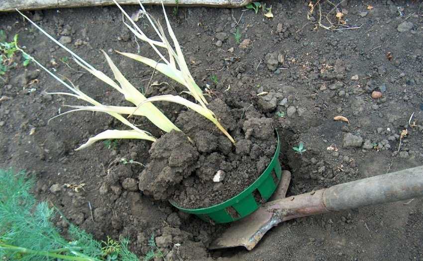 • От летнего зноя оставшуюся в земле часть цветка защитит окучивание. Земля не должна покрывать точку роста растения.