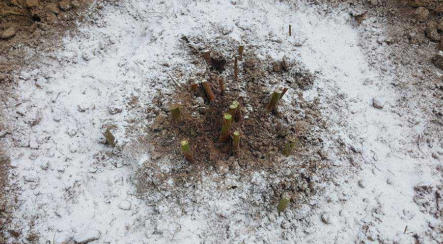 корень располагают с таким расчетом, чтобы первые почки были ниже края ямки на 5 сантиметров