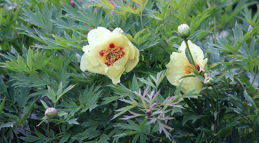 Отличается от всех других разновидностей пион тонколистный красный благодаря необычной листве.