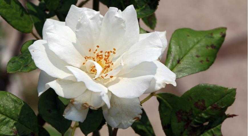 Роза Schneewittchen даже по описанию производителей часто повреждается черной пятнистостью