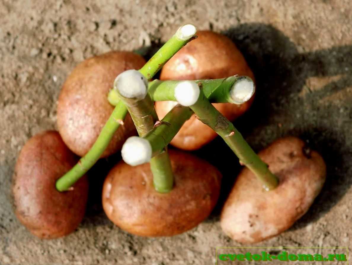 Спорное укоренение роз в картофеле иногда спасает, если грунт заражен бактериями. К тому же он прост: