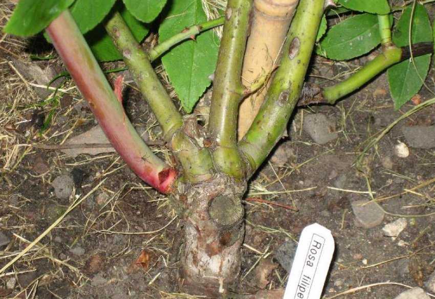 Места срезов обрабатывают садовым варом. Только потом укрывают куст торфом, грунтом с другого участка, перегноем, или опилками на высоту 25–30 см. Плетистые и штамбовые виды роз на зиму не обрезают, а пригибают к грунту, стягивая побеги верёвками, а затем укрывают лапником или укрывным материалом (рубероидом).