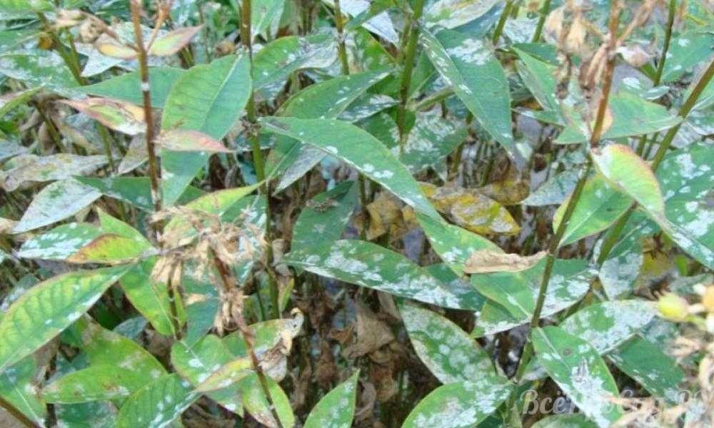 - Мучнистая роса. Это грибковое заболевание, которое образуется в виде белого налета на листьях. Для устранения используют бордоскую жидкость или другие противогрибковые препараты. Для профилактики заболевания рекомендуется использовать слабый раствор марганцовки, которым опрыскивают растения в весенний период.