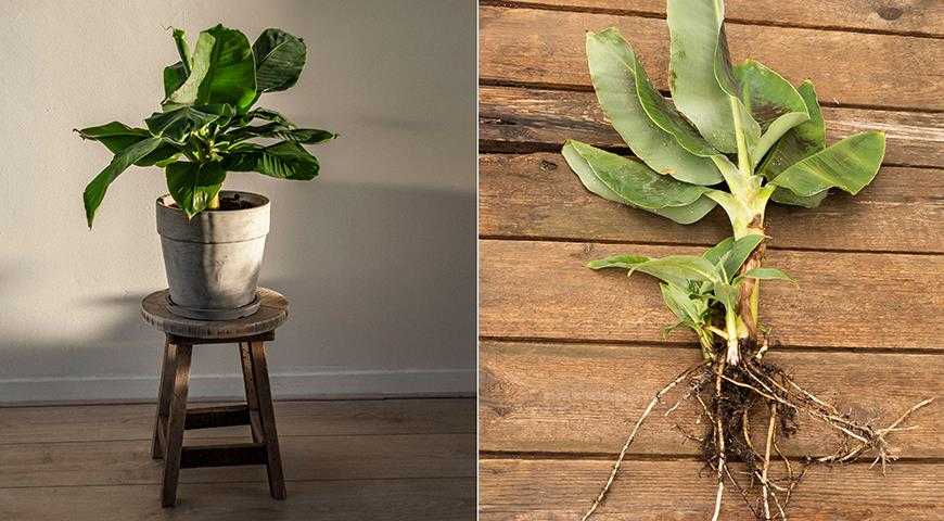 - Растение банановое дерево имеет мощную и быстро растущую корневую систему, которая за короткое время заполняет все пространство горшка. Новое кашпо должно быть шире и глубже предыдущего на 1-2 см.