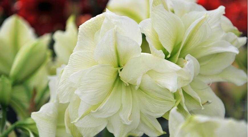 Marilyn. Экзотические махровые цветки — сливочно-белые со светло-зеленым оттенком. Этот пышный гиппеаструм выделяется даже среди своих тропических собратьев.