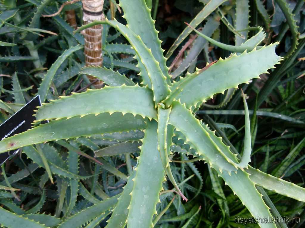 - Самым известным является алоэ древовидное, оно способно излечить от вирусных и грибковых заболеваний. Считается, что он борется со злокачественными опухолями.
