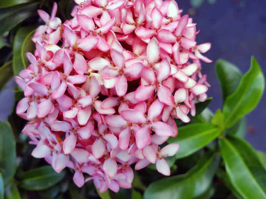 Китайская иксора представлена кустарником, высота его до одного метра. Листочки темно-зеленого цвета, на концах остроконечные. Цветочки беловатого, розового, желтоватого оттенка.