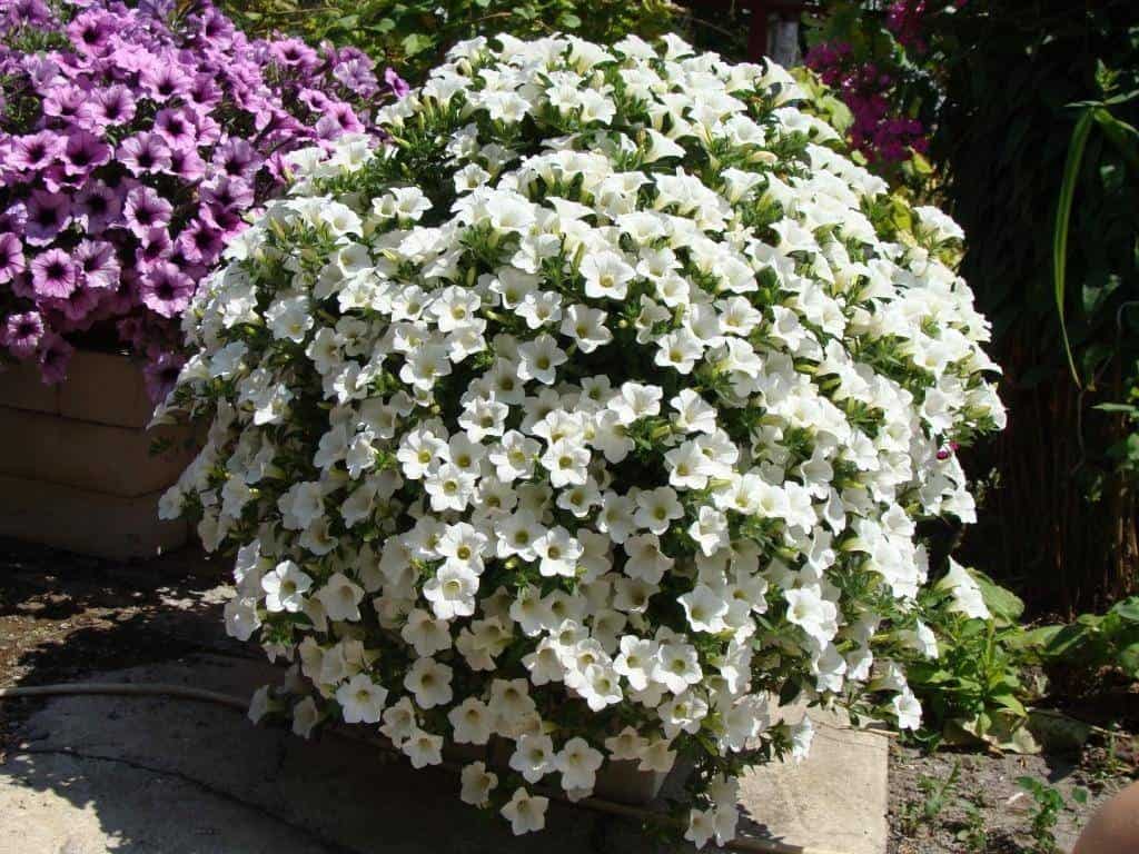 Вайт – растение часто высаживают в каскадные клумбы, так как оно активно растет. Его сильные побеги с множеством цветков вырастают до 1,5 м. Сами цветки среднего размера. Цвет преимущественно белый, может быть кремового или нежно желтого оттенков.