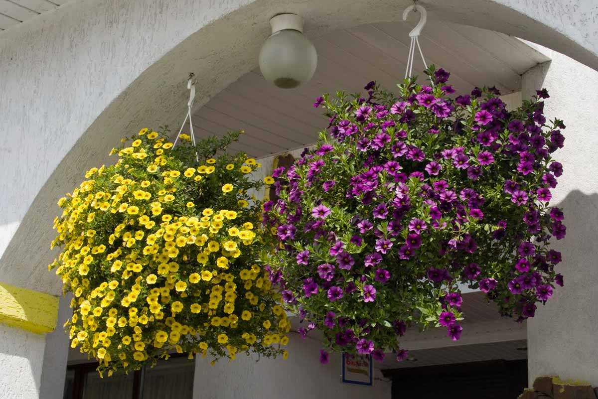 Осенью у калибрахоа и сурфинии обрезаются все длинные плети до размера 10-15 см от корня, удаляется все засохшее до минимального количества зеленой массы. Производится обработка от болезней и вредителей, после чего вазоны помещают в освещенное помещение с температурой не меньше +7°С–+12°С. Можно при возможности держать их в доме при не более +20°С. Следующей весной при повышении температуры растение даст новые побеги.