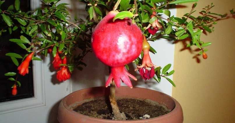 Как вырастить гранат в домашних условиях, чтобы он начал давать плоды как можно скорее? Соблюдайте приведенные ниже правила ухода за деревом. Правильно выращенное растение зацветет уже через 10–12 месяцев после посадки, а а первые плоды вас порадую через три года. Чтобы ускорить плодоношение, оборвите первые цветы дерева, потому что на их формирование оно отдает все свои силы, останавливаясь в росте на этот период.
