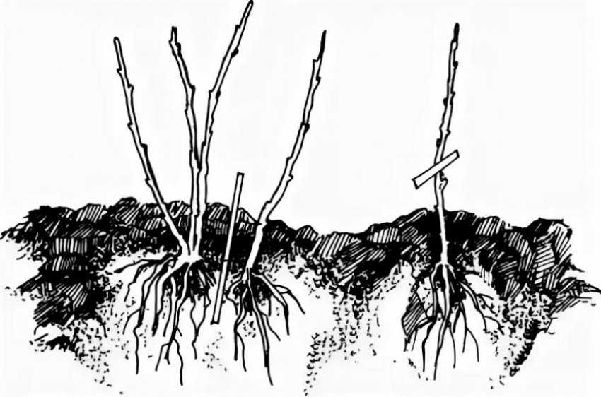 Для отводка выбирают внизу куста самую длинную ветку. Весной выполняют следующие действия: