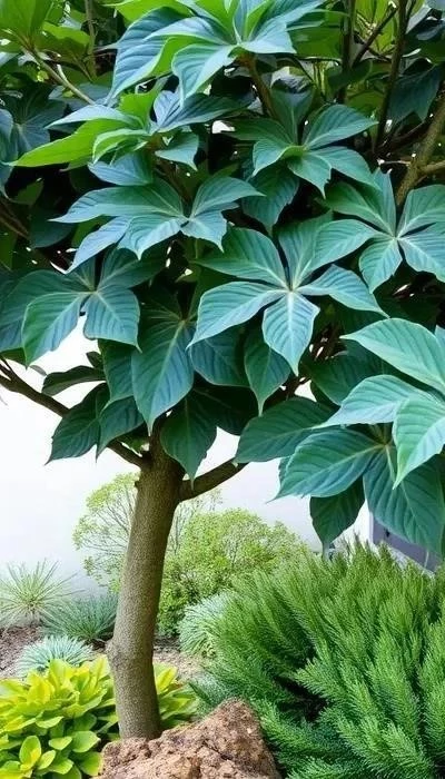 Особое внимание уделяется декоративности листвы и коры, а также способности растений создавать интересные текстуры и формы. В гранж-стиле приветствуются растения с выразительной листвой, меняющей оттенки в течение сезона, или необычной корой, добавляющей фактурности. Сочетание хвойных и лиственных растений с разными оттенками листвы позволяет добиться глубины и разнообразия. Например, дерево с серебристой хвоей эффектно смотрится рядом с кустарниками с темной листвой.