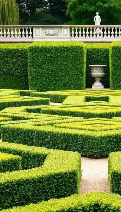 Самшит (Buxus) – классика неоклассического сада. Вечнозеленый, медленнорастущий, прекрасно поддается стрижке. Идеален для создания живых изгородей и геометрических фигур. Требует плодородной, хорошо дренированной почвы и регулярного полива.