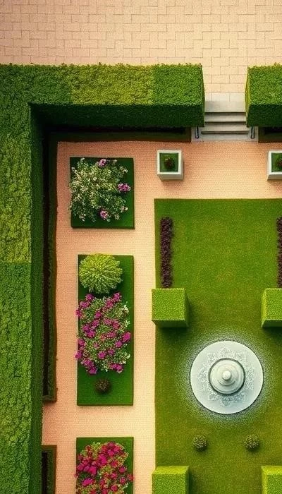 Живые изгороди из бирючины обыкновенной разделяют сад на сектора, создавая четкие границы и подчеркивая формальную планировку. В качестве акцентов можно использовать одиночные посадки роз или сирени. Важно соблюдать правило контраста или нюанса при выборе растений для клумб, чтобы добиться гармоничного сочетания цветов и форм.