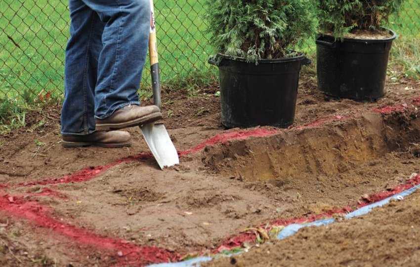 - На расстоянии 25-30 см готовят лунки для посадки. Размеры лунок должны соответствовать размеру земляного кома растения.