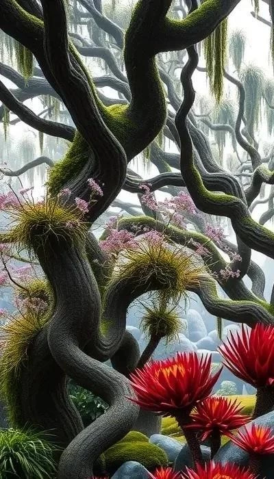 При выборе растений для сюрреалистичного сада особое внимание следует уделить их форме и текстуре. Растения с необычной формой кроны, причудливыми листьями или интересной корой помогут создать ощущение нереальности и фантазии. Контраст между различными текстурами – гладкой и шероховатой, мягкой и жесткой – добавит саду глубины и выразительности.