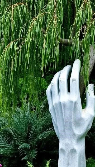 Плакучая ива с ее ниспадающими ветвями создает эффект искажения и таинственности, идеально подходящий для сюрреалистичного сада. Ее изящная форма и мягкая листва добавляют саду романтичности и умиротворения.