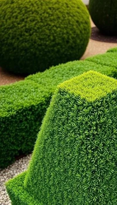 Обрезка формирует желаемые формы и стимулирует рост. Самшит и кипарисовик требуют регулярной стрижки. Полив должен быть умеренным, избегайте переувлажнения. Подкормка весной комплексными удобрениями обеспечит здоровый рост и обильное цветение.