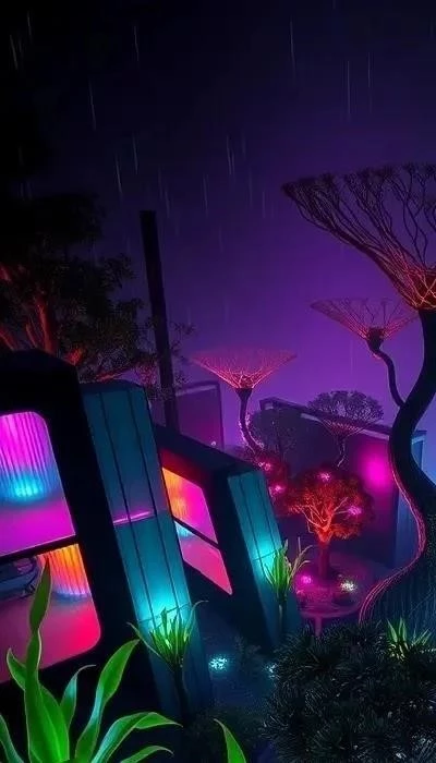 При создании киберпанк сада важно уделить внимание выбору растений, которые будут соответствовать общей стилистике и создавать желаемую атмосферу. В топе растений для такого сада оказываются те, что обладают необычной формой, темным цветом листвы или коры, а также хорошо сочетаются с элементами освещения и другими технологичными деталями. Не стоит забывать и про вертикальное озеленение, которое поможет максимально эффективно использовать пространство.