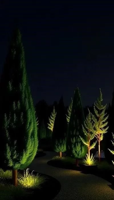Он прекрасно смотрится в одиночных посадках, а также в группах, формируя эффектные вертикальные акценты. Подсветка у основания дерева подчеркнет его форму в темное время суток, создавая атмосферу киберпанка. Можно использовать светодиодные ленты или точечные светильники с холодным белым или синим светом. Кроме того, кипарисовик Ellwoodii хорошо поддается стрижке, что позволяет создавать из него геометрические фигуры, подчеркивая технологичный стиль сада.
