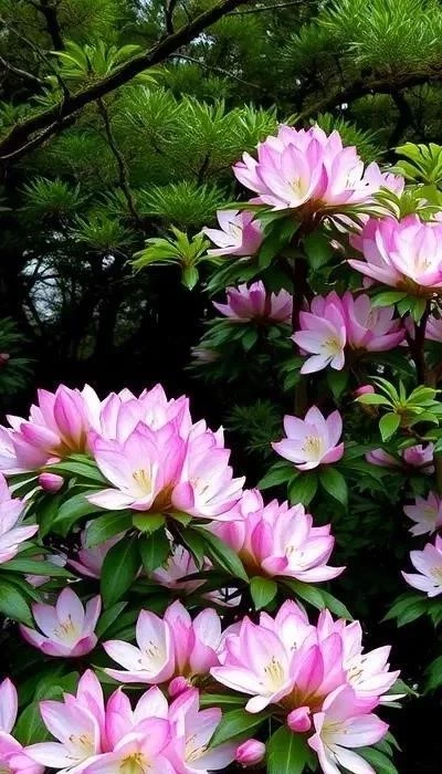 Цветовая гамма растений должна быть сдержанной и естественной. Японский сад не терпит ярких, кричащих цветов. Предпочтение отдается растениям с нежными, пастельными оттенками или с зеленой листвой. Азалии, с их разнообразием оттенков розового и белого, прекрасно вписываются в японский сад, добавляя ему изысканности и элегантности.